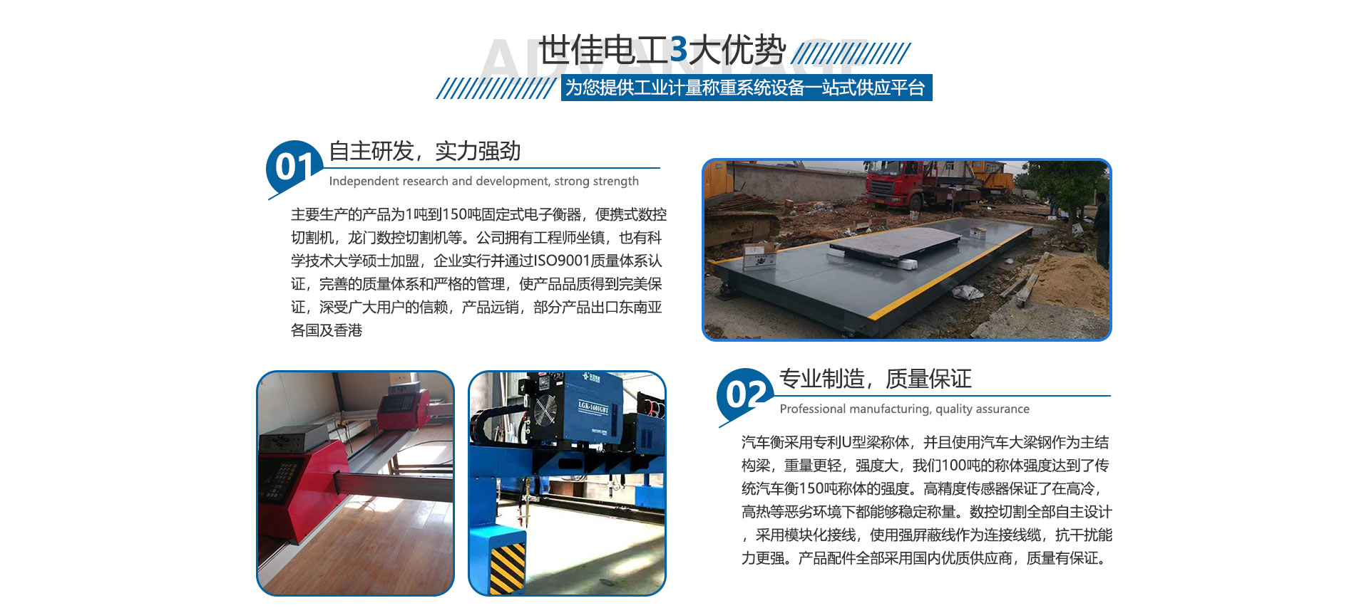 關(guān)于我們合肥世佳電工設(shè)備有限公司是生產(chǎn)、銷售工業(yè)自動化設(shè)備。主要生產(chǎn)的產(chǎn)品為1噸到150噸固定式電子衡器,便攜式數(shù)控切割機,龍門數(shù)控切割機等。公司擁有工程師坐鎮(zhèn),也有中國科學(xué)技術(shù)大學(xué)碩士加盟,完善的質(zhì)量體系和嚴格的管理,使產(chǎn)品品質(zhì)得到保證,深受廣大用戶的信賴,產(chǎn)品各地可售,部分產(chǎn)品出口東南亞各國及香港,數(shù)控切割設(shè)備也在安徽處于前列。我們并不滿足現(xiàn)在所取得的成就,公司繼續(xù)加大科研投入,正在和中科大物理研究所科研人員共同研究開發(fā)下一代衡器控制儀表,希望以技術(shù)作為突破口,將公司做大做強,為中華崛起盡自己一份綿薄之力。歡迎廣大客戶來廠參觀訂貨考察。